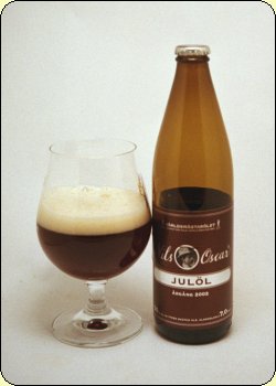 Nils Oscar Julöl 2002 är ett kraftfullt och värmande överjäst öl med fyllig maltkaraktär som kommer bäst till sin rätt om ölet serveras vid 12°C till 15°C. Det är framställt av malt från Tärnö Säteri, rostat korn och den engelska humlesorten Fuggles. Häll upp ölet så att det skummar ordentligt. Avnjut det till kraftiga kötträtter - gärna vilt, till lagrade hårdostar eller i ensamt majestät. Ölet smakar utmärkt som ungt men kan också med fördel lagras några år. Då utvecklas smaken till ännu större mjukhet och rondör.