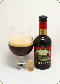 Flasktext: Prize Old Ale is brewed, bottled, corked and labelled in the Brewery, Horndean. The rich, full bodied, and distinctive flavour is derived from a subtle blend of the finest English malt and hops. After careful tending in our traditional open wooden vats, the taste is further enhanced by extended maturation: hence the term Old Ale. Prize Old Ale improves with keeping and should be stored on its side between 50° and 60°F. To enjoy Prize Old Ale at its best, stand the bottle at room temperature some hours before opening, to allow the yeast to settle, then carefully withdraw the cork and pour slowly, retaining the yeast behind the shoulder of the bottle.