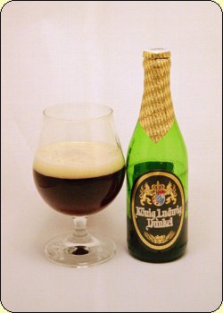 Flasktext: Detta öls historia sträcker sig tillbaka till år 1516 då Wilhelm IV i den Kungliga Bayerska familjen Wittelsbach instiftade Renhetslagen vilken grundade det Bayerska ölets ryktbarhet. König Ludwig Dunkel tillverkas liksom i forna tider på mörkt malt och finaste aromahumle vilket ger den fylliga friska smaken.