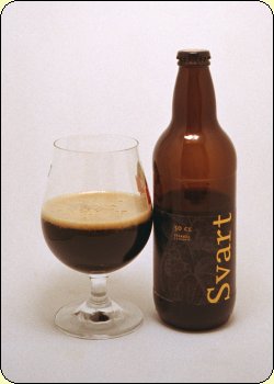 Flasktext: Svart är en torr porter. Dess speciella karaktär uppnås genom att delar av malten rostas under hög temperatur tills den antar en brun eller bärnstenslik färg.