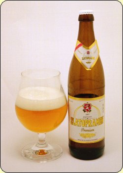 Flasktext: Im Jahre 1867 wurde die Brauerei in Ústí nad Labem (Aussig) gegründet, wo das typisch böhmisch helle Traditionsbier unter dem Namen ZLATOPRAMEN gebraut wird. Das Bier ist durch seine ausgeglichene Qualität, seinem Duft mit angenehmen Hopfenaroma, Glanzfeinheit und einer zarten Bittere berühmt. Böhmischer Hopfen und böhmisches Malz, sowie die einzigartige Rezeptur sind die Garantie der hohen Qualität des ZLATOPRAMEN, wofür der Braumeister mit seinem Namen einsteht.