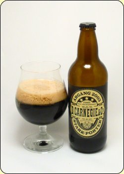 Flasktext: Carnegie Porter är ena halvan i en äkta Half & Half Carnegie Porter började bryggas redan år 1836 och smaken är densamma än idag. Porter har ett härligt skum och doftar som av kaffe. Smaken är fylligt söt, mjukt balanserad av en markerad humlebeska. Den vinner på att lagras. Smaken mognar och blir mer harmonisk. Prova att blanda Carnegie Porter med ett ljust lageröl. Half & Half brukar det kallas i England.