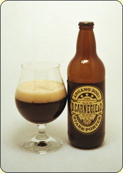 Flasktext: Carnegie Porter är ena halvan i en äkta Half & Half Carnegie Porter började bryggas redan år 1836 och smaken är densamma än idag. Porter har ett härligt skum och doftar som av kaffe. Smaken är fylligt söt, mjukt balanserad av en markerad humlebeska. Den vinner på att lagras. Smaken mognar och blir mer harmonisk. Prova att blanda Carnegie Porter med ett ljust lageröl. Half & Half brukar det kallas i England. Beska 8. Fyllighet 10. Sötma 3.