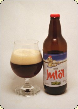 Flasktext: Jämtlands Julöl återskapar de gamla bryggartraditionerna. Detta är ett överjäst öl med ett rikligt inslag av frukt samt en djupröd färg. Julöl är ett kraftfullt öl med lagom sötma och en väl avvägd tillsats av (aroma) humle från England och USA. Serveras vid 10°-12°C.