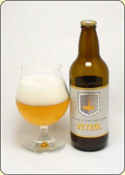 Flasktext: Gamla Stans Veteöl är ett färsköl bryggt på 50% vetemalt och 50% kornmalt. Ölet är överjäst med hjälp av en mycket speciell jäststam som ger den goda arombalansen mellan kryddnejlika och frukt. Servera det livliga ölet källarsvalt i höga glas och låt det skumma! Ofiltrerat och opastöriserat som vanligt. Innehåller vetemalt, kornmalt, humle, jäst och vatten.