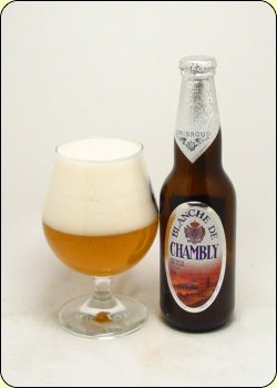 Flasktext: Blanche de Chambly is a beer containing a deposit of fresh yeast: the result of refermentation occurring in the bottle. This beer is only partially filtered to enable it to retain the benefits of its natural ingedients. Its slightly blurry appearance is characteristic of white-beer recipes dating back to the Middle Ages.