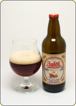 Flasktext: Three Hearts Julöl bryggs enligt ett gammalt traditionsrikt recept av ett mörkt s.k. Münchnermalt och av utsökt aromhumle. Därigenom framkommer den fylliga och aromrika smak som gjort Three Hearts Julöl så omtyckt och berömt. En riktigt God Jul önskar vi dig. Carl Krönlein. Tage Krönlein.