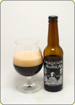 Flasktext: The famous Bear Gates guarding the approach to Traquair House, near Peebles, have been closed since 1745 - when the last person to pass through them was Bonnie Prince Charlie. Now, 250 years later, the ancient Traquair Brew House celebrates the Jacobite cause by producing this potent Spiced Ale to a traditional fine recipe. Sip slowly and remember the old toast 'to the King O'er the Water'.