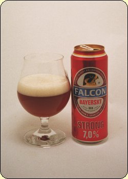 Flasktext: Falcon Bayerskt 7,0 är ett halvmörkt och fylligt öl med en mild sötma som balanserar den högre alkoholhalten. Men förutom en mustig smakrikedom ryms här även en rejäl dos bryggarhistoria. Dels äkta Bayersk öltradition - det var ju här bryggarkunnandet började utvecklas till den ädla konstart det är idag. Och dels vår grundare John L Skantzes enkla men obevekliga filosofi från 1896 om att inget annat än rent källvatten och bästa möjliga råvaror får användas.